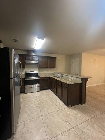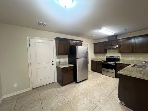 - Kitchen: The kitchen has a Refrigerator & Stove