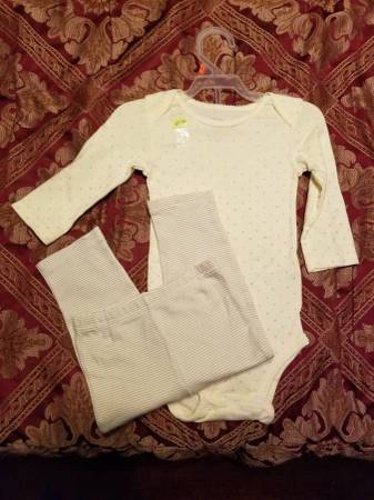 Selling some baby clothes size 12 months in good condition. Smoke n pet free household. 9 White/white pink floral dress w/ bloomers $5 Carter's 2 piece long sleeve set $2 (has a small stain on ea...