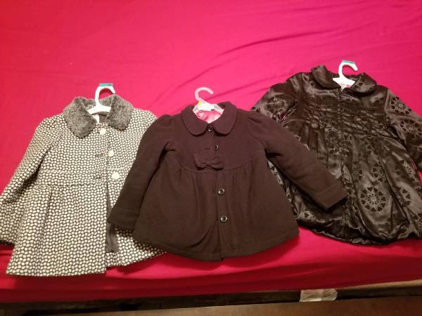 Selling some very nice sz 4t. Smoke n pet free home. Pick up near me. Gray trench coat $15 Black trench coats $7 each