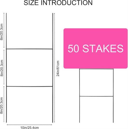 Easy Installation, Excellent Stability: These H-shaped stakes insert smoothly into unbroken ground, providing outstanding support for lawn signs to remain upright in windy or uneven conditions. Heavy-Gauge Steel Rods, Outdoor Rated - 30"H x 10"W.