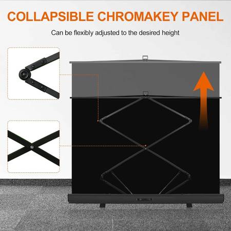 Premium Fabric Professional wrinkle-resistant black screen optimized for camera chroma keying making figure background-matting simple & convenient, also making color reduction more real. Pneumatic X-Frame The support height of the Pneumatic X-frame can be adjusted at will, when the screen reaches the appropriate height, it will be fixed automatically.