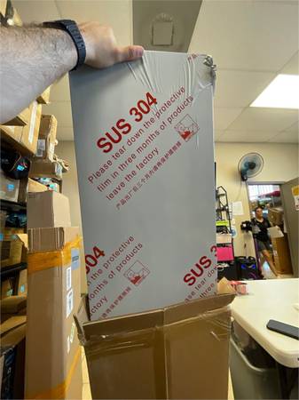 Selling a brand-new Folding Concession Shelf, 72" x 12" Stainless-Steel Drop-Down Folding Serving Food Shelf for Concession Windows. Asking $125 for it.
