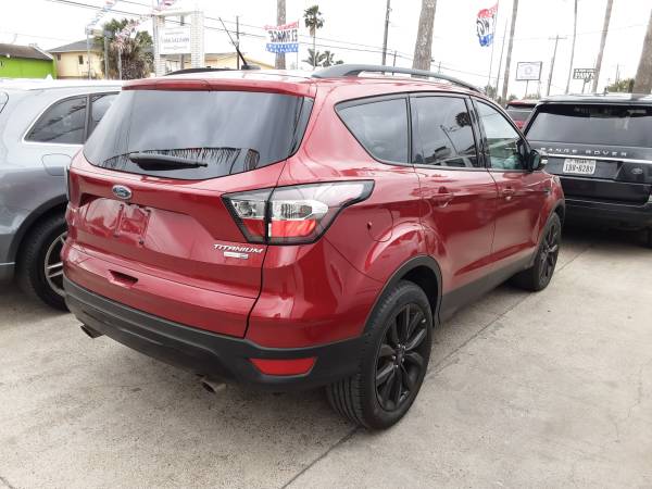 2017 Ford Escape Titanium 4wd 4cyl 2.0 Ecoboost. Vehicle is equipped with Heated seats, AM/FM/XM/HD/USB/SYNC/BLUETOOTH, Premium sound, Hill start assist control, Electronic traction control, AdvanceTrac, ABS (4 wheel), Electric power steering, Tilt & Telescoping wheel, key less Entry/Start, A/C, power windows, doors, locks, cruise control, power liftgate release, Dual power seats, parking sensors, Dual airbags, side airbags, F&R Head curtain airbags, knee airbags, alloy wheels, fog lights, rear spoiler. FINANCING AVAILABLE, WARRANTIES, ROADSIDE ASSISTANCE & GAP AVAILABLE. NO CREDIT NEEDED. SOCIAL NO SOCIAL WELCOME. SSI, DISABILITY WELCOME. DIRECT DEPOSIT, SELF EMPLOYED WELCOME. WE HAVE MANY PROGRAMS FOR EVERYONE. Call/Text 956-455-7974 or 956-545-3337