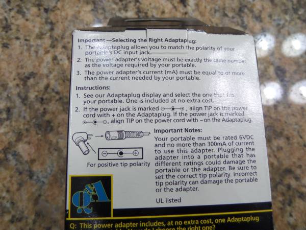 Radio Shack 6V, 300mA Power Adapter, 273-1758, AC To DC $ 10 DOLLARS