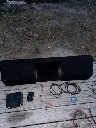 Complete sound system with 8in subwoofers with amp, bass knob, and epicenter including wiring.