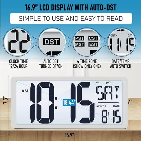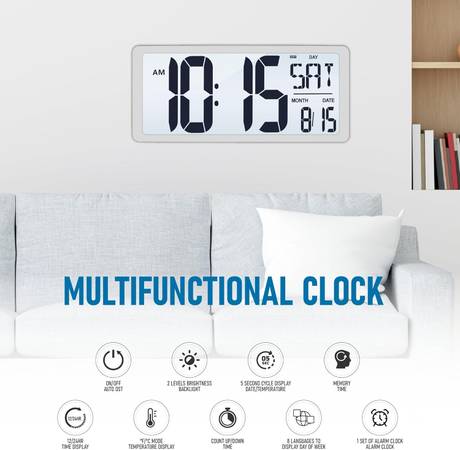 NEW TXL 18.44" Large Digital Wall Clock with Backlight, Battery Operated Alarm Clock with Day, Date & Temperature, Jumbo Display Digital Count Up Down Timer Clock for Home ,Classroom Room, Office 18.44" Large Digital Wall Clock with Backlight】 With large easy to read numbers, large digital clock can be seen at any angle. Featuring a built-in ambient light sensor, once it is dark at night, the screen will automatically light up, allows you can see the time in the dark. User-friendly design, there are 2 levels of adjustable brightness in the dark for your choice. Also, you can turn it off.