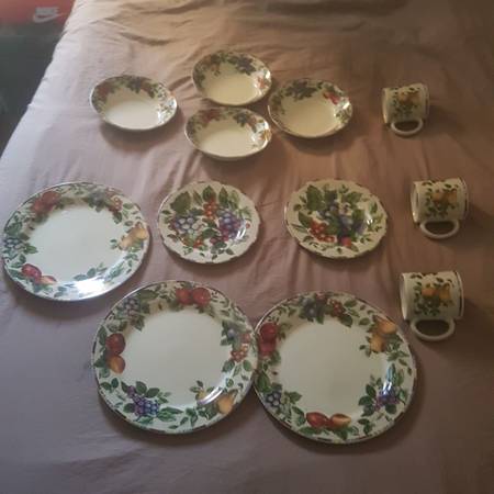 Sakura onedia fine china set.asking $70 or best offer Seagull fine china 4 dishes with cristmas design asking $25 call or text..
