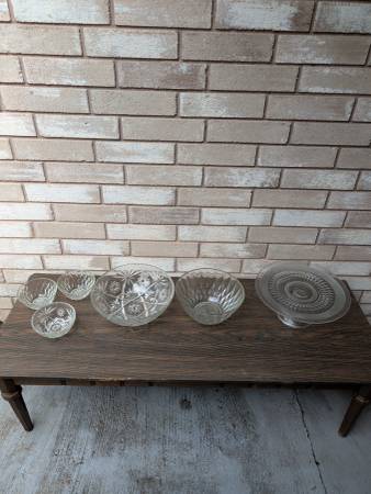 Pedestal cake stand (1), large glass bowls (2) and small large bowls (3).