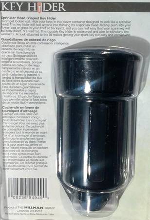 Key Hider - Sprinkler Head Shape, Black Made of strong molded resin which will hold up in most weather conditions. Waterproof and able to withstand adverse weather conditions