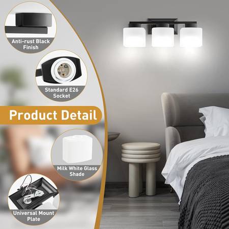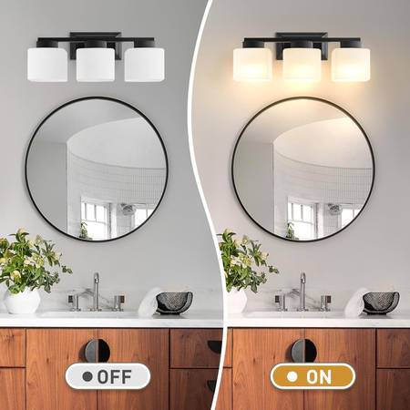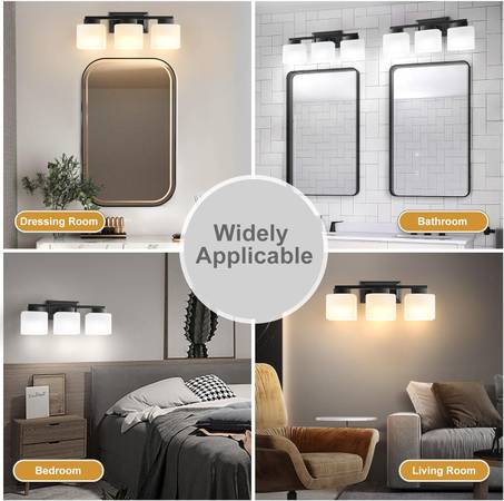 NEW 3-Light Bathroom Light Fixtures - Black Bathroom Vanity Lights with Frosted Glass Shade Modern Bathroom Lighting Fixtures Over Mirror - Wall Sconce Lamps for Bedroom,Living Room,Hallway Modern Design & Durable Quality: Crafted from sturdy metal and glass, this stylish wall light sconce is the perfect upgrade for both traditional and contemporary homes. The glass shade allows the bulb to shine brightly, creating a warm and inviting atmosphere. EJIAXIN wall sconces offer a variety of styles to complement your décor, including Industrial, Farmhouse, Vintage, Rustic, Classic, and Modern.