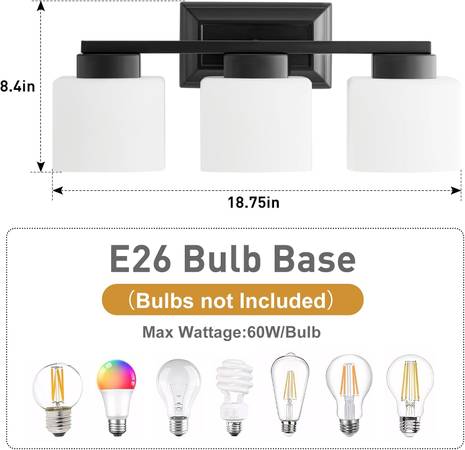 Easy Installation & E26 Base: Everything you need for a quick and easy installation is included, so you can have your light up in minutes. Simply connect the wires and assemble the glass shades. This vanity light fixture requires 3 E26 base bulbs (max 60W per bulb). Please note, bulbs are not included. It’s compatible with incandescent, CFL, halogen, and LED bulbs, but we recommend using vintage Edison bulbs for the best look.