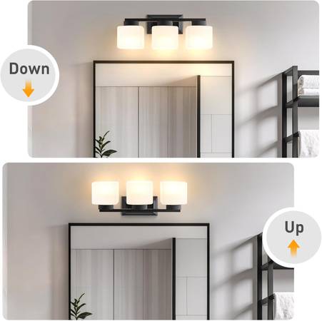 Up and Down Reversible Mounting: The 3-light vanity lighting fixture can be mounted both upward and downward to suit your needs. Typically installed above a mirror or as porch lights with the bulbs facing down, it can also be mounted with the lights facing up, perfect for reading or other activities while sitting on a bed or stool. This versatile fixture is ideal for any room in your home, including bathrooms, bedrooms, hallways, closets, living rooms, kitchen cabinets, and dressing tables. It adds a stylish and elegant touch to your décor.