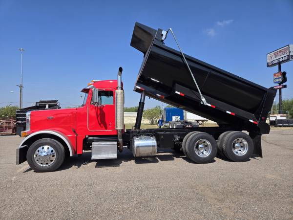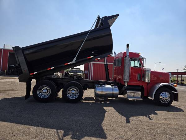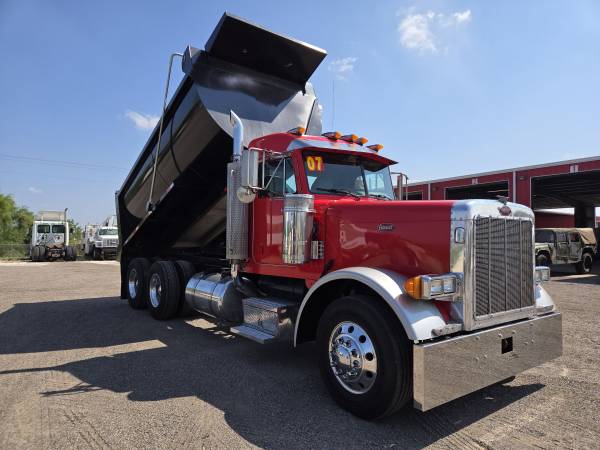 2007 Pet 379 Dump Truck For Sale, Unit 730, Cat C-15, twin turbo, Jakes, 475 HP, Miles 1,785,980, Hours 50,202, 13-Speed Manual Transmission, Air Ride Suspension, 3.55 Rear end ratio, 295/75R22.5 all new tires with 6 aluminum/ 4 steel wheels, new paint job. New 15 Ft Dump Body with hydraulic system and new electric tarp system. Cold a/c. DOT ready. Ready to get to work.