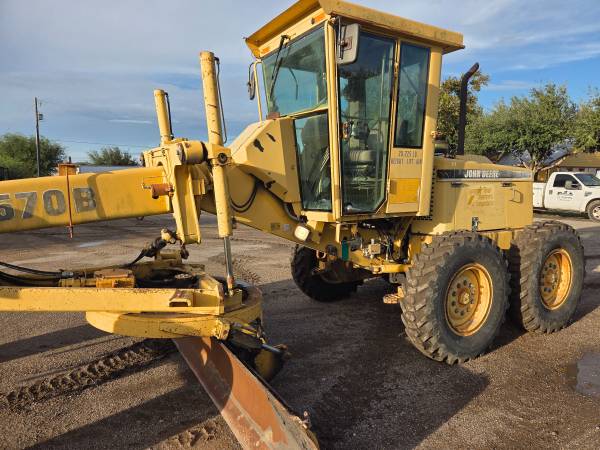 Up for sale is a John Deere 570B Motor Grader. Enclosed cab will all windows. Good tires all around. AC components are all there but AC is NOT functional. Machine has normal wear and tear and a few minor leaks. Great for ranch Maintenace or begining contractor operations.