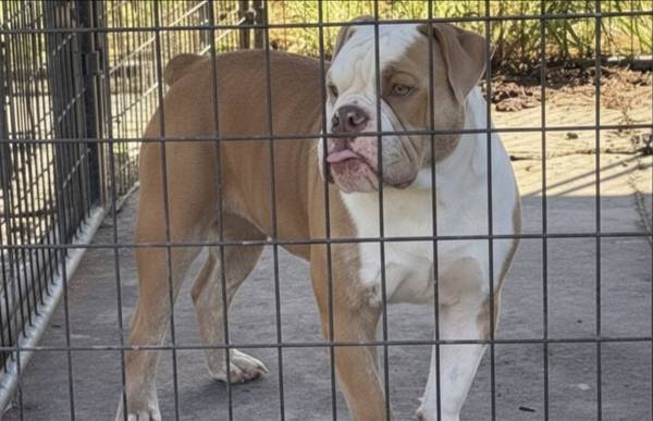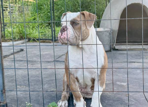 female Olde English Bulldogge good with other dogs and people. very playful 9 months old