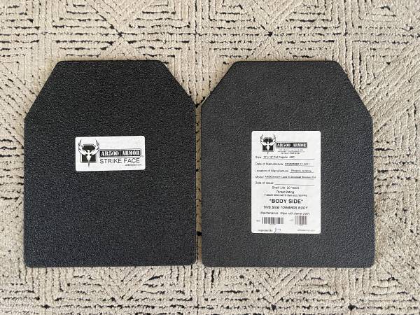 Steel Body Armor Two (2) plates Flat with Regular ASC Level III Protection 10 x 12 inches / 8.4 lbs