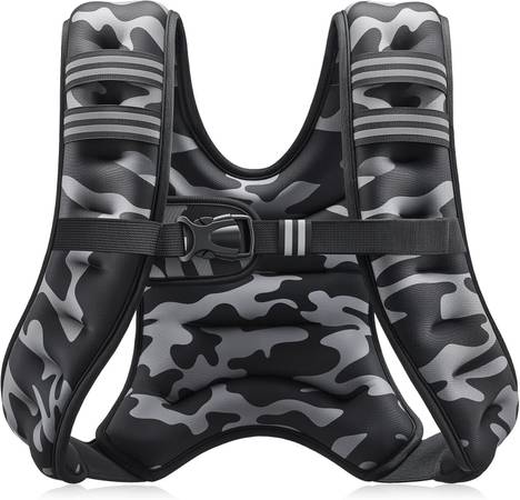Selling a brand-new ZELUS black camo 20LB Weighted Vest, 6lb/8lb/12lb/16lb/20lb/25lb/30lb Weight Vest with Reflective Stripe for Workout, Strength Training, Running, Fitness, Muscle Building, Weight...