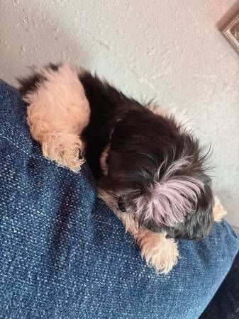 male Shitzu ready for his forever home he is 4 months old he loves to play and cuddle he is also potty trained he recently went to the groom place txt 6197227 thank you