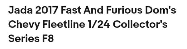 Fast and Furious Dom car. Scale 1/24. Used, fair condition. Asking 12. Text 956-558-933six. Pick up in Edinburg. Thank you