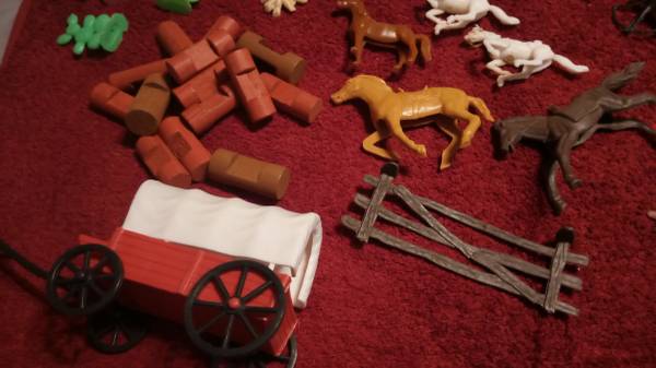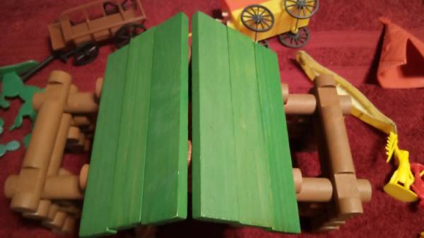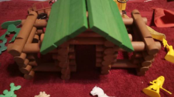 Selling these play logs. Cowboys, Indians, canoe, teepees, wagons included. Instructions included. Box torn. Asking 25. If interested text 956-558-934two.. Must pick up in Edinburg. Thank