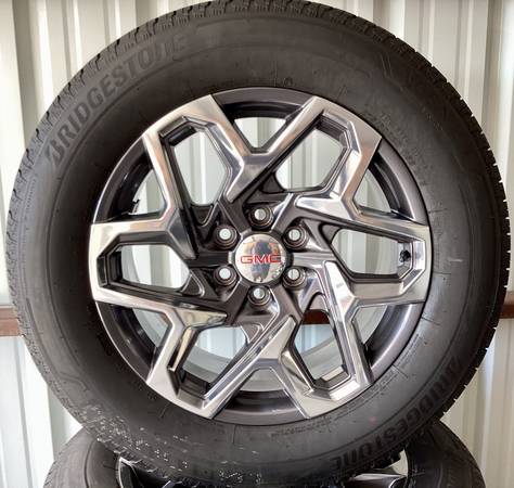Bran NEW, just came off a New 2026 GMC Sierra SLT, 20" Original GM Aluminum Wheels with New Bridgestone Alenza 275/60/R20 Tires. Complete set is New and ready to install on your GMC or CHEVY truck. I also have the Chevy center cap, if you prefer chevy. Already balanced from GM. Only $1,350 cash... no offers please, price is Firm. thank you...Edinburg show contact info