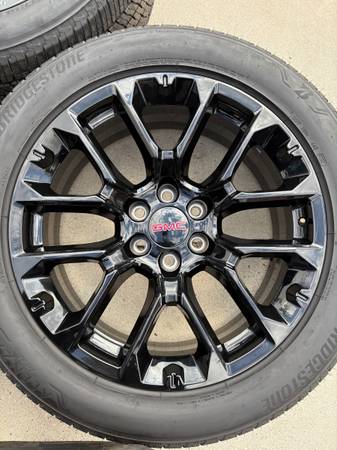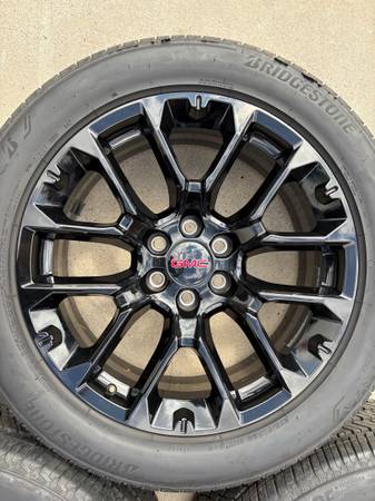 Like new OEM 22" Chevy / GMC wheels with Bridgestone tires. Came off of a Denali Ultimate. These are new factory take offs that will fit full size 6 LUG GM trucks and SUV’s from 1988 - current model including Silverado, Sierra, Tahoe, Yukon, Suburban, Escalade & Avalanche. Also have sets of it factory lug nuts if needed. Call or text show contact info