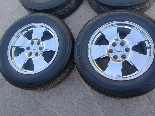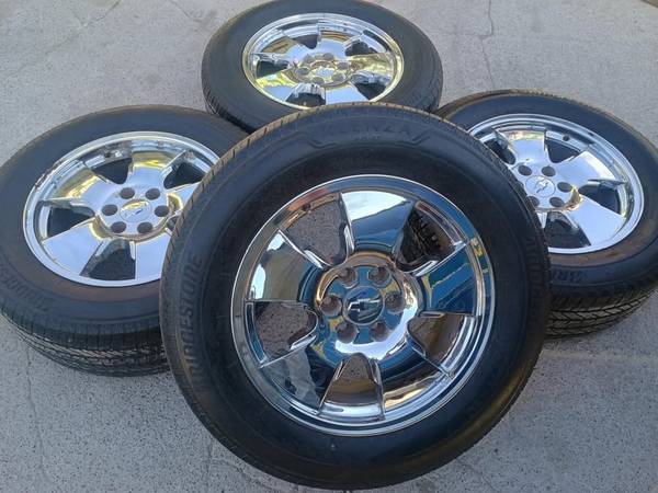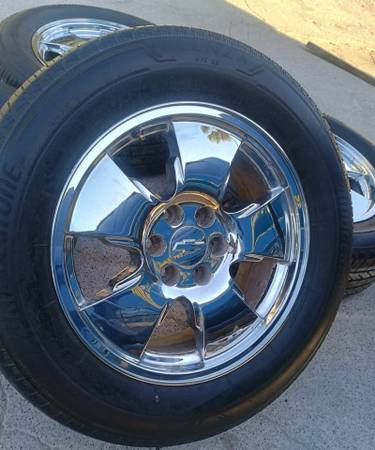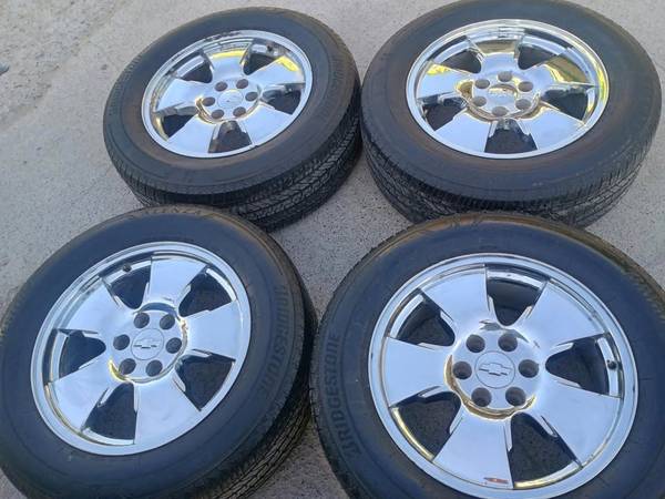 Set of 20s Chevy/GMC Chrome Rims Original 6 lugs with tires Bridgestone 275/60/20 Tires All four in good conditions $590 Interested contact at (956)588536zero