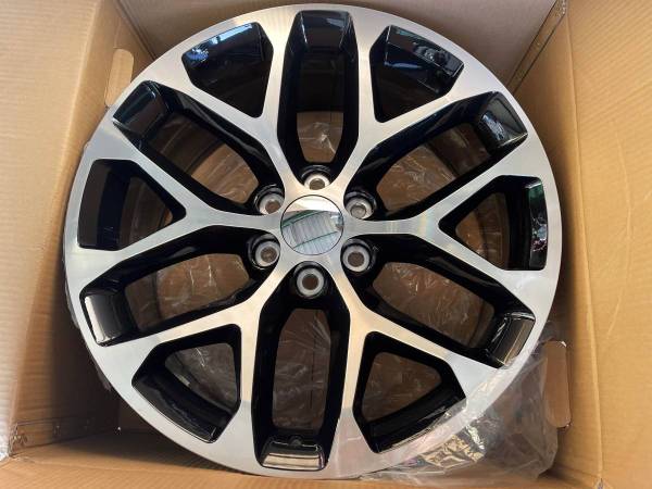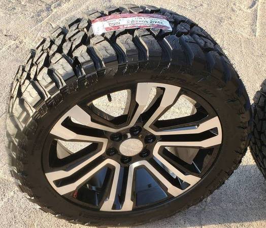 Selling set of 22inch Replica wheels Chevy/GMC Brand New out of box Mounted on 33x12.50x22 MT for $1900 305/40/22 also available! Interested contact at (956)588536zero