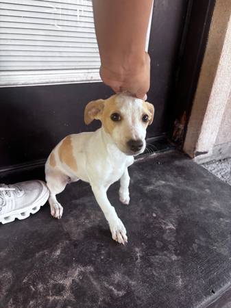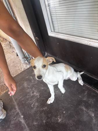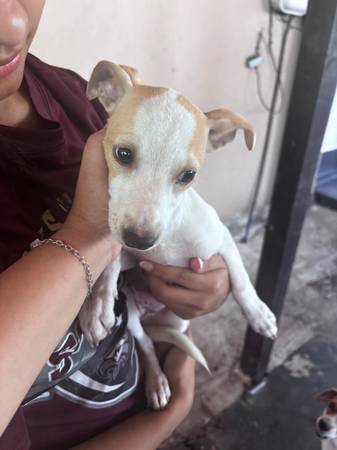 Free puppy, we don’t know the breed but we are hoping to find a loving patient family for her. She is very sweet but it takes a little while to get her accustomed to people since she is very scared but interacts very easily with other dogs. She is healthy.