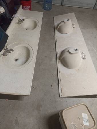 tengo 2 counters de baño que se pueden pintar y quedar en buenas condiciones, ambos con 2 lavabos cada uno, tambien tengo 2 canceles de aluminio para baño.